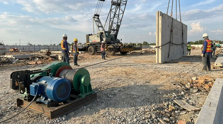 建設現場を想像してみてください。数トンもの重さがあるプレキャストコンクリートパネルを正確に配置する必要があります。作業員は頑丈な電動ウインチをセットアップします。モーターが唸り、ドラムが回転し始め、パネルがゆっくりと、しかし計り知れないほどの力で前進します。