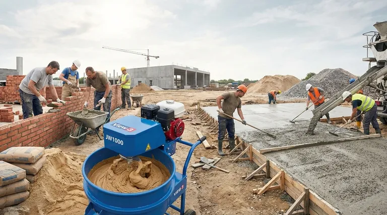 専用のモルタルミキサーも存在しますが、正しい手順に従えば、標準的なコンクリートミキサーをモルタルに効果的に使用できます。機械自体の主な違いは、モルタルミキサーは固定ドラムにパドルがあるのに対し、コンクリートミキサーは回転ドラムを使用して材料を転がすことです。